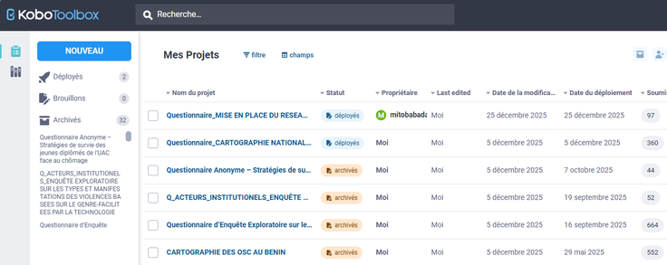 -Collecte de données en ligne (Google Forms, KoboToolbox, ODK, etc.)