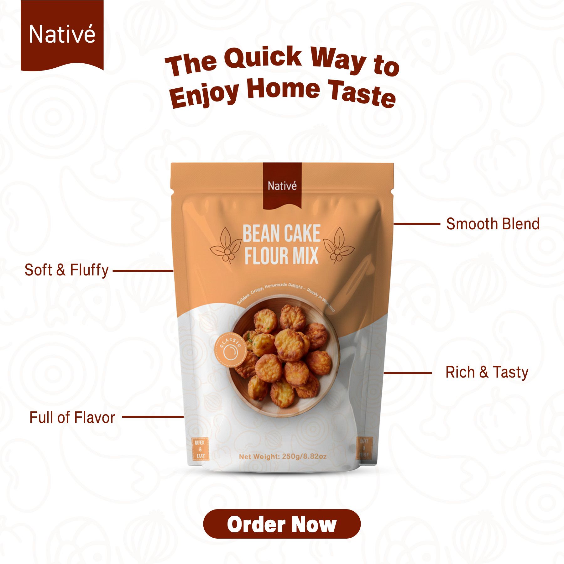 Designed packaging and social media content for Native’s bean cake mix product, creating clean, brand-consistent visuals to improve product visibility, recognition, and promotional engagement across digital and physical platforms. -