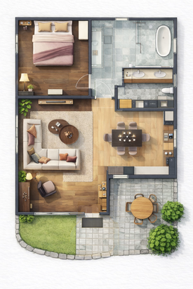 Création de plans 2D et croquis pour l’aménagement intérieur • Conception 3D simple avec rendu réaliste pour visualisation de projets • Réalisation de moodboards pour présenter les styles et ambiances • Collaboration avec les clients pour adapter