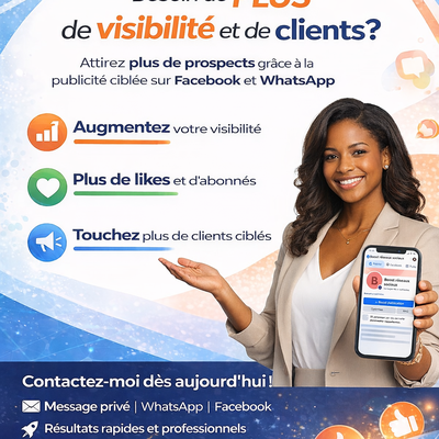 🎯 Pour qui est ce service ? ✔ Entrepreneurs ✔ Commerçants ✔ Artistes ✔ Toute personne qui veut développer sa présence sur Facebook
