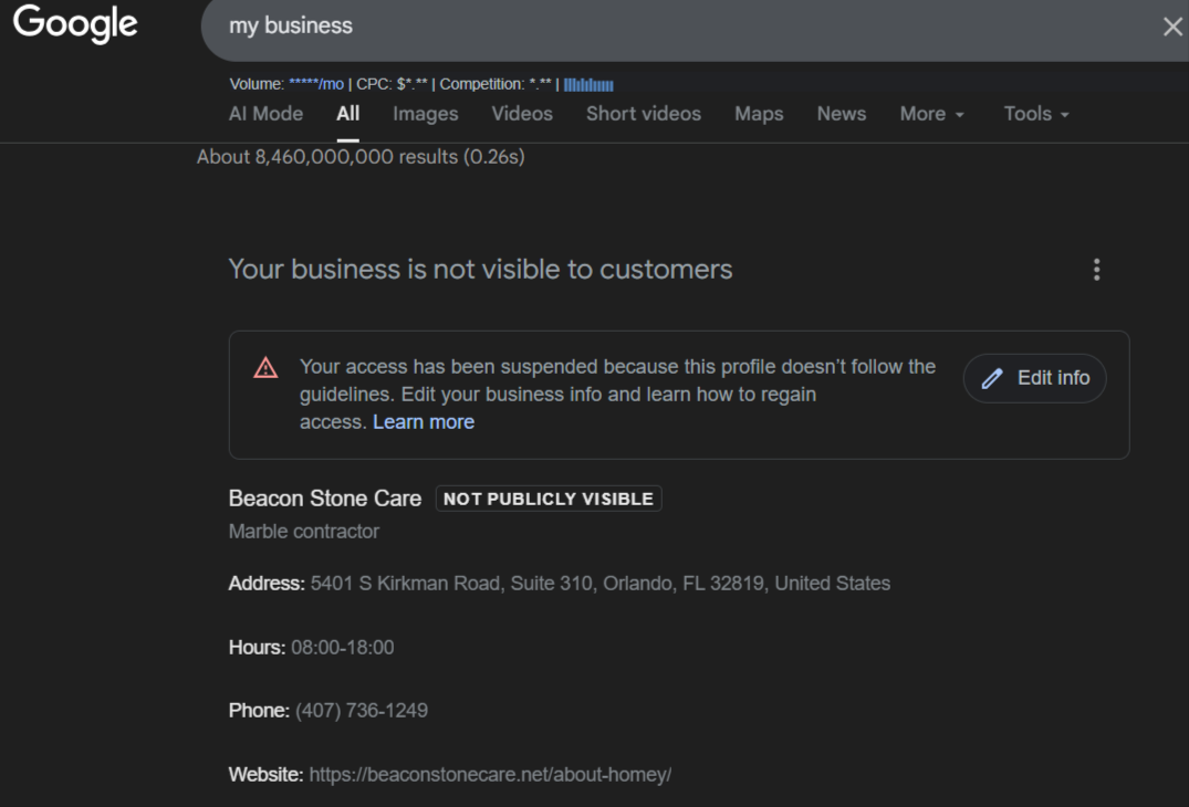 ✅ Rétablissement GMB : Récupération de fiches suspendues (même après plusieurs échecs).