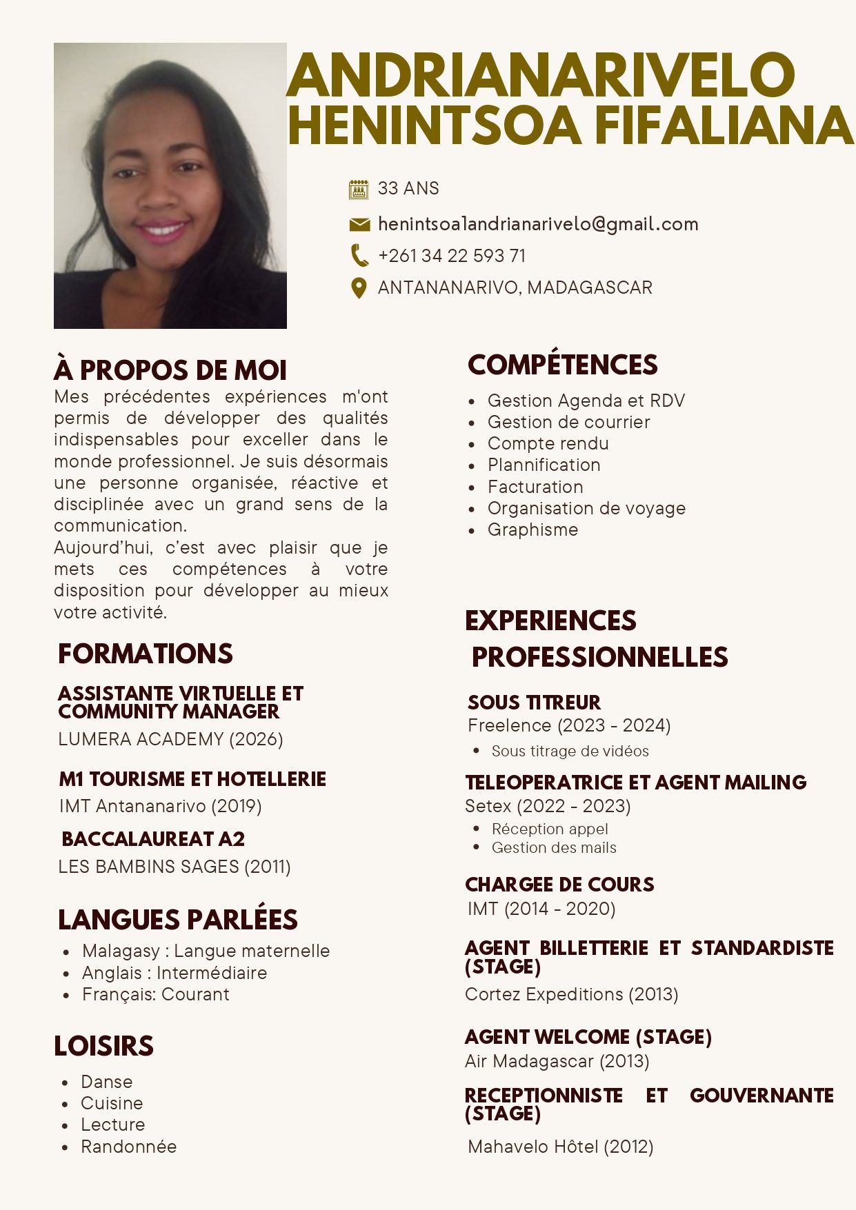 Je vais m'occuper de vos tâches administratives. Je peux également m'occuper de vos visuels sur les réseaux