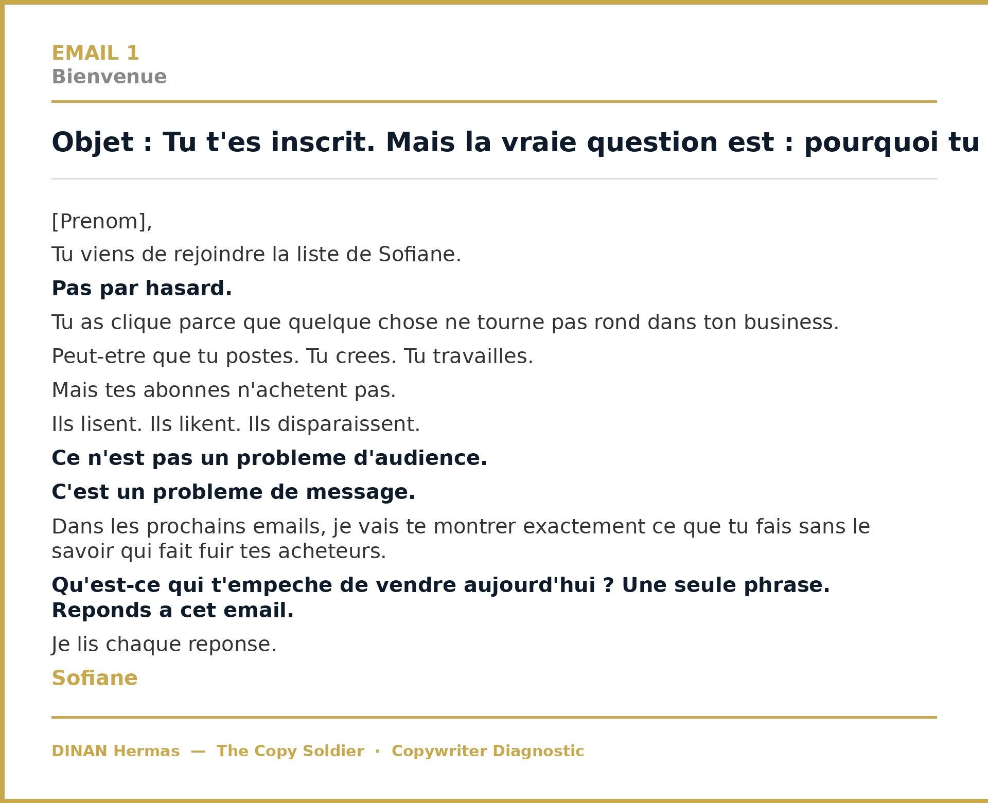 Email 1 — Bienvenue : crée la confiance dès le premier contact