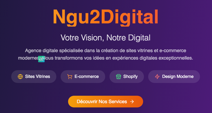 Agence digitale spécialisée dans la création de sites vitrines et e-commerce modernes. Nous transformons vos idées en expériences digitales exceptionnelles.