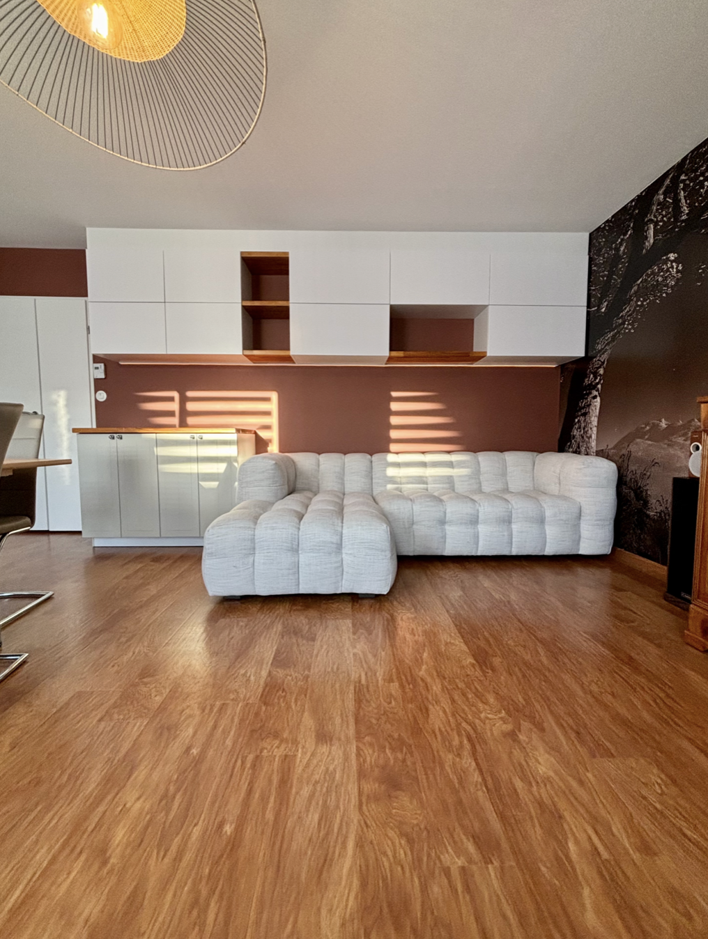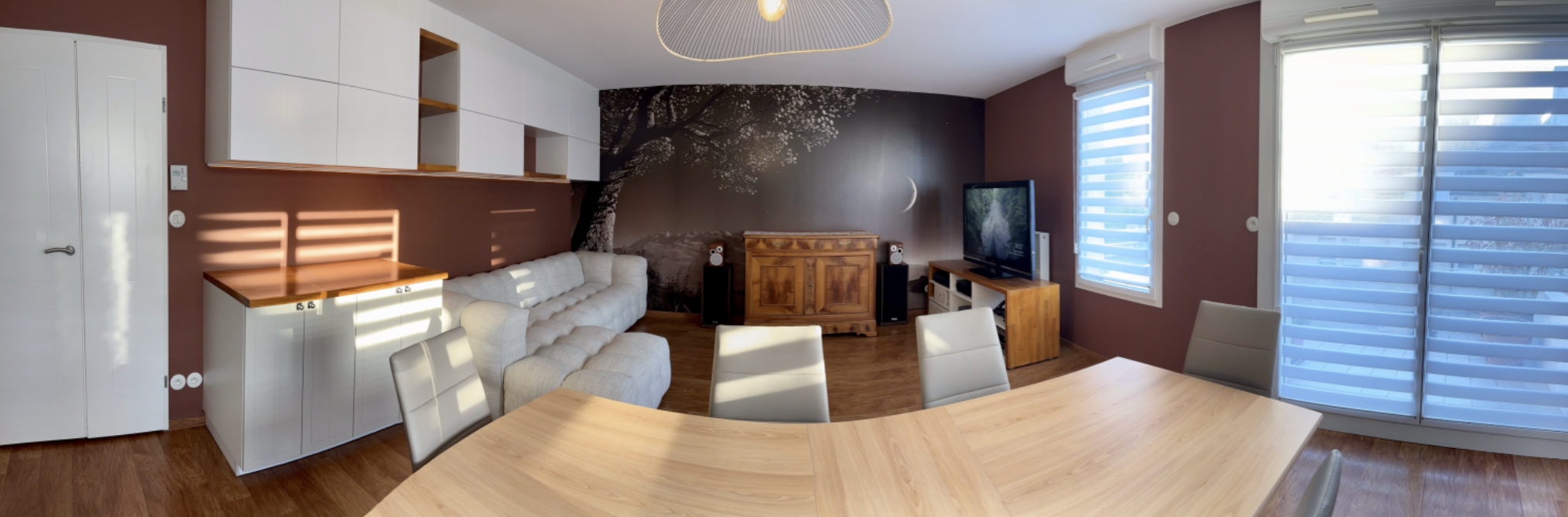 Une artiste locale m’a confié son appartement de 133 m² à Nancy (54), qui avait passé plus de 30 ans dans son jus. Les murs porteurs étaient non négociables en copropriété, séparant le salon, l’entrée et le reste de l’appartement. Ajoutez à cela les contraintes liées au COVID, les retards de livraison et quelques finitions problématiques… et tu obtiens une aventure d’un an, du premier rendez-vous jusqu’à la livraison finale.