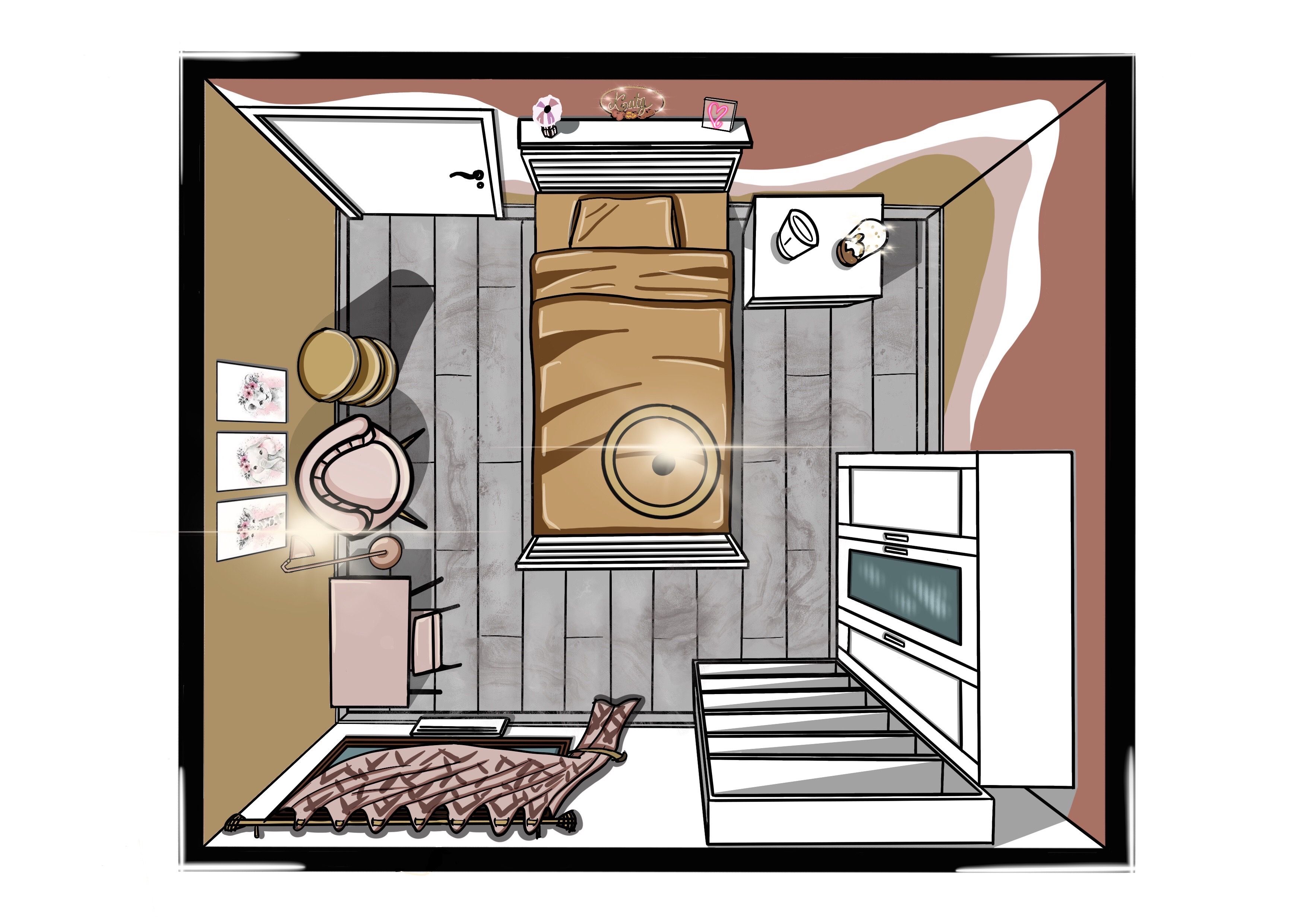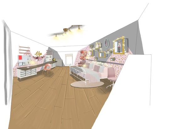 Pour cette chambre de jeune fille, les parents souhaitaient un espace girly, fonctionnel et évolutif, à l’image de leur fille de 10 ans : créative, passionnée et pleine d’imagination. Située entre Nancy et Metz, cette chambre de 20 m² est devenue un univers sur-mesure, où elle peut travailler, bricoler, lire, jouer… et exprimer pleinement sa personnalité. La première étape ? écouter l’enfant. À cet âge, elle sait ce qu’elle aime, ce qui la rassure et ce qui l’inspire — une base essentielle pour créer une chambre durable qui grandira avec elle.