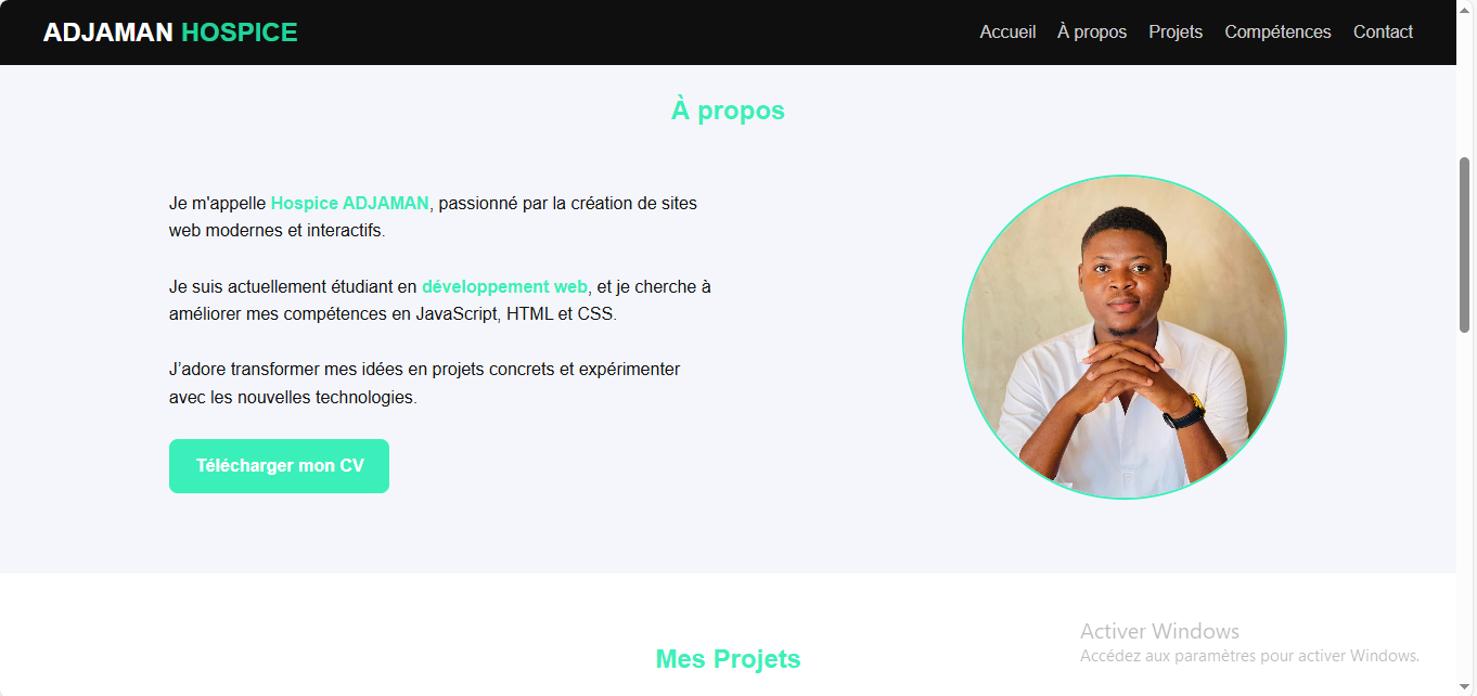 Je suis détenteur d'une attestation de formation en Développement web délivrée par l'Organisation Internationale de la Francophonie.