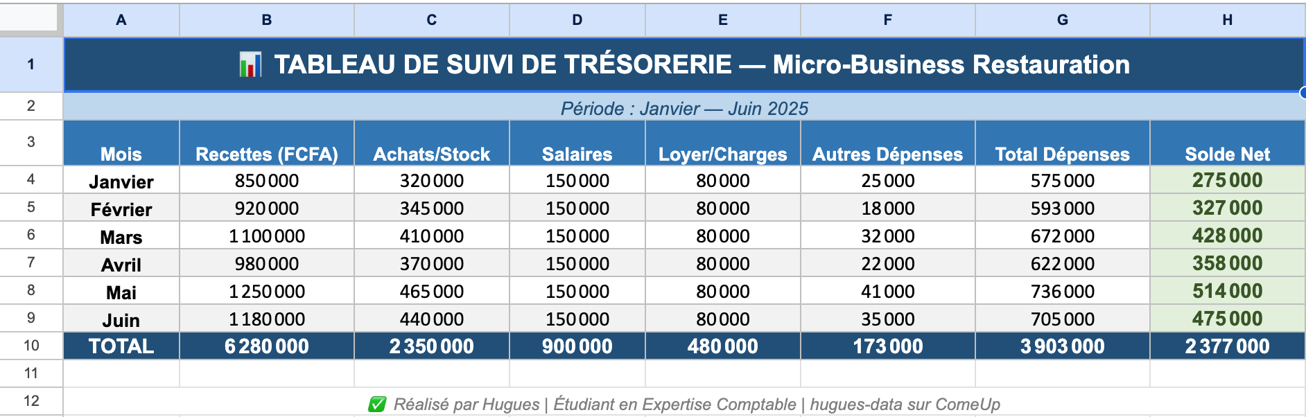 Je vais créer votre tableau de bord Excel pour suivre vos ventes, dépenses et trésorerie
