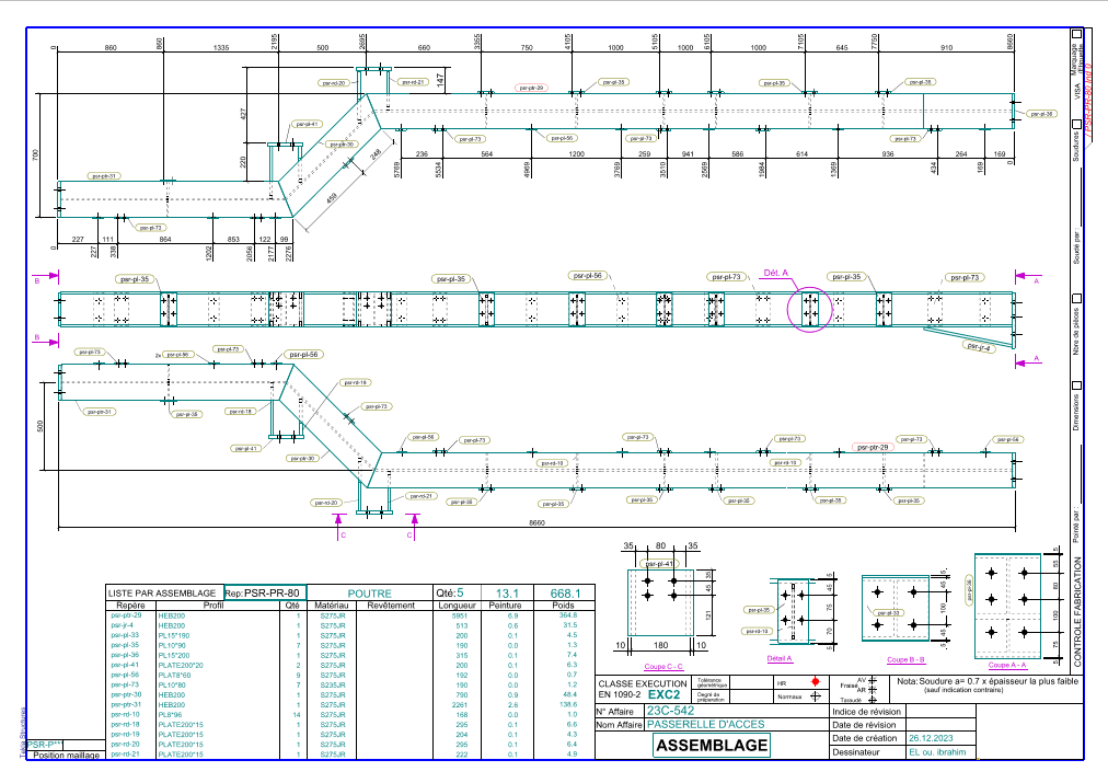 Modèle 3D coordonné. Plans de montage, plans d'assemblage/de pièces détachées pour le processus de fabrication aux formats .pdf/.dwg. Documents associés complets [MTO, nomenclature des pièces d'assemblage, boulonnerie, etc.] Coordination avec d'autres disciplines. Veuillez noter que les tâches suivantes ne relèvent pas de mon champ d'intervention :
