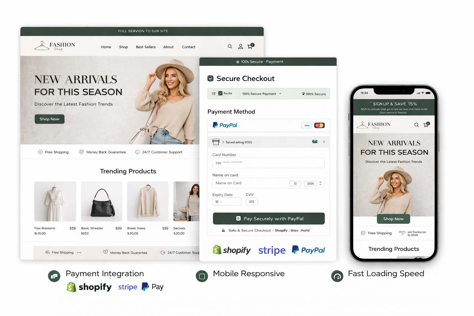 Création et gestion de boutiques Shopify professionnelles. Mise en place de thèmes, configuration des paiements, optimisation des pages produits et accompagnement e-commerce pour entrepreneurs et PME.