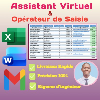 Assistant Virtuel & Opérateur de saisie-Expert Excel & Recherche Web