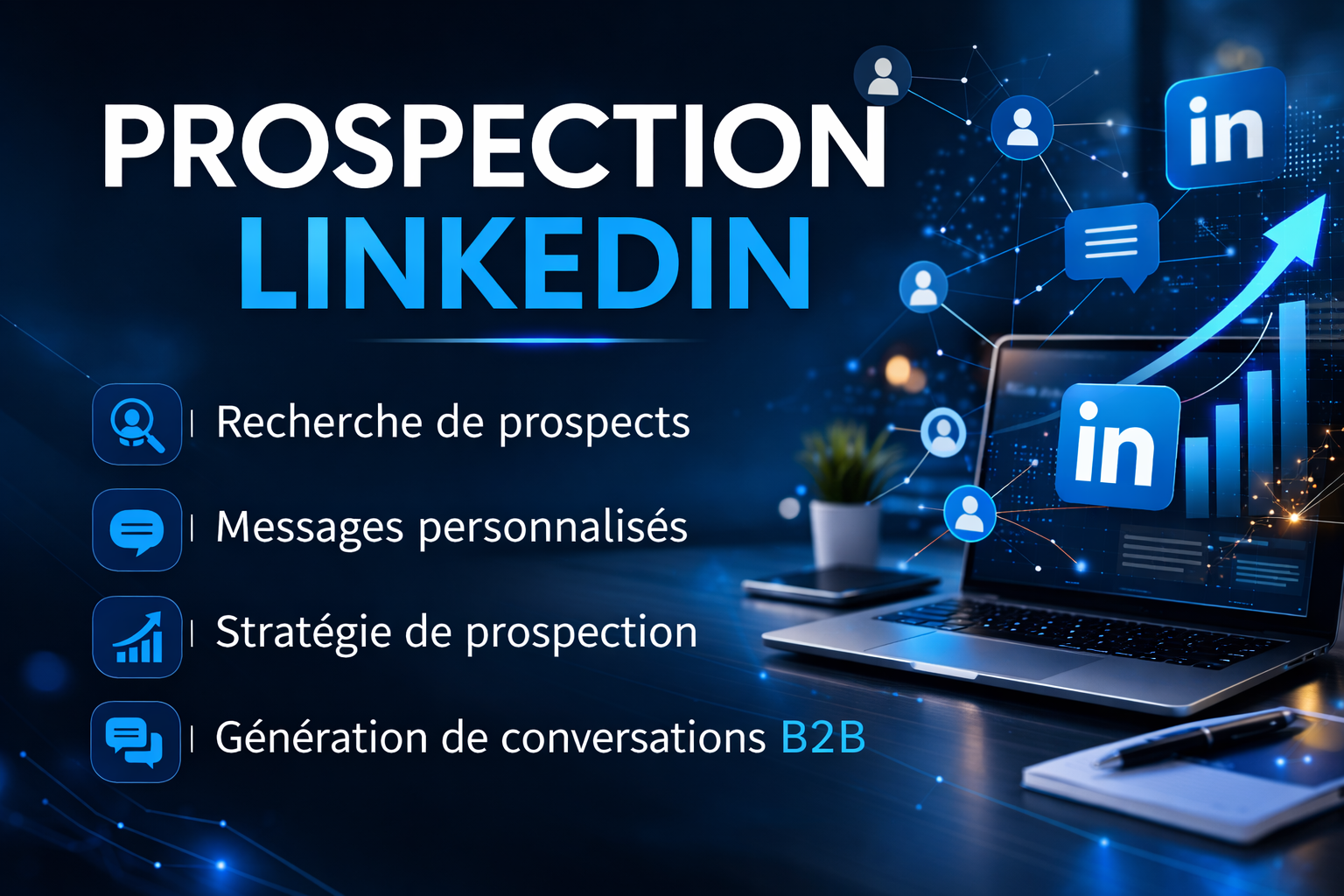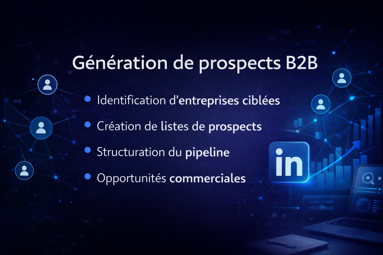 • recherche de prospects qualifiés • génération de leads B2B • prospection LinkedIn • messages personnalisés et séquences de relance • organisation des prospects dans un CRM