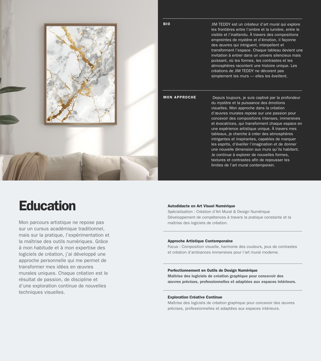 Je fournis un accompagnement complet pour créer une identité digitale professionnelle, des campagnes efficaces et des œuvres uniques qui subliment vos espaces.