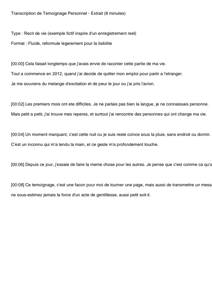 Transcription manuelle de fichiers audio (entretiens, réunions, témoignages, podcasts). Travail précis, rapide et confidentiel. Plus de 900 heures d’audio transcrites Clients : particuliers, chercheurs, entrepreneurs. Types de transcription -