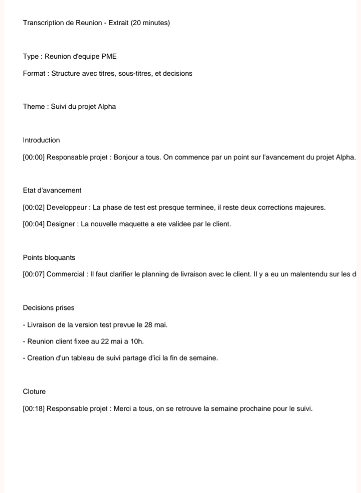 - Transcription audio