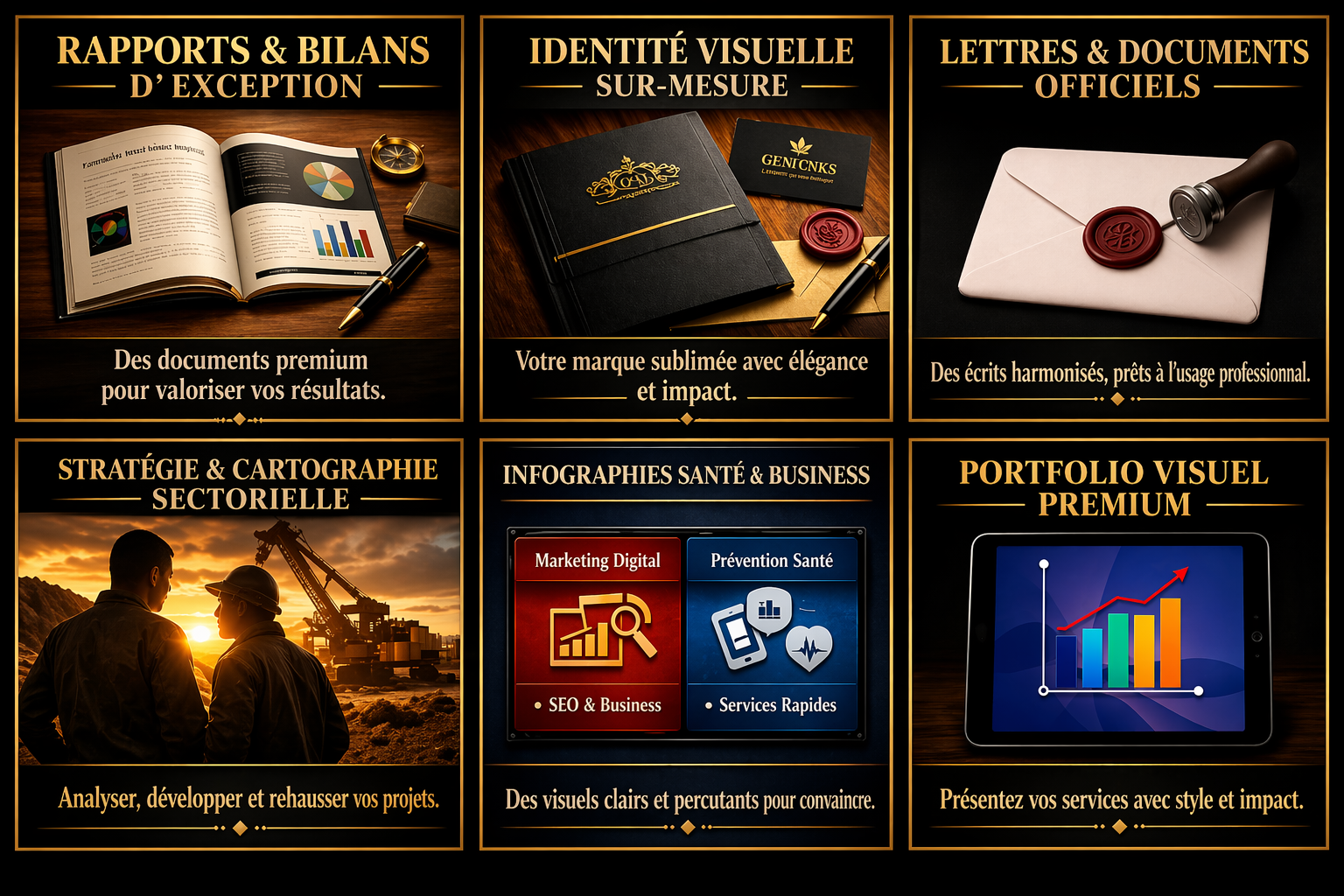 ** Votre expertise mérite une autorité visuelle d'élite.** Un document mal structuré ou visuellement pauvre perd 50 % de son impact auprès de vos partenaires, investisseurs ou clients. Ne laissez pas une mise en page générique affaiblir votre message. Bonjour, je suis Joël, Architecte Visuel diplômé de l’IFASIC. Mon approche "Bespoke" (sur-mesure) ne se contente pas de "décorer" vos pages. Je construis une véritable stratégie de communication visuelle pour transformer vos documents en actifs de prestige. Je fusionne la rigueur académique et les codes de la Haute Couture pour offrir à vos supports une crédibilité instantanée. 📌 CE QUE JE RÉALISE POUR VOUS : Rapports Annuels & Bilans Corporatifs : Pour les institutions et les entreprises exigeantes. Pitch Decks & Présentations Stratégiques : Pour convaincre vos investisseurs avec clarté et puissance. Livres Blancs & E-books de Luxe : Pour asseoir votre autorité dans votre domaine. Supports Institutionnels : Une mise en page sobre, élégante et percutante. 💎 POURQUOI CHOISIR L'APPROCHE BESPOKE ? Précision Chirurgicale : Chaque alignement, chaque police et chaque espace blanc est pensé pour la lisibilité. Authenticité : Votre identité est unique, votre document doit l'être aussi. Excellence : Un rendu final "Haute Définition" prêt pour l'impression ou la lecture digitale haute performance. Prêt à passer au niveau supérieur ? Choisissez l'option qui correspond à votre ambition ci-dessous et donnons vie à votre vision.