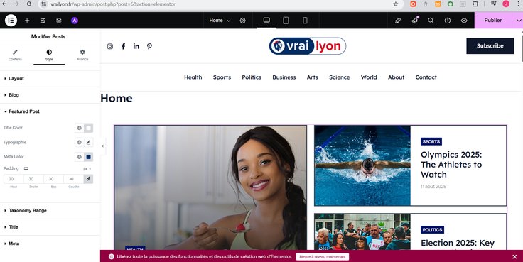 Rédaction et intégration d'articles spécialisés en santé et bien-être, optimisation SEO on-page et recherche de mots-clés stratégiques pour positionner le blog sur les requêtes les plus recherchées du secteur. -