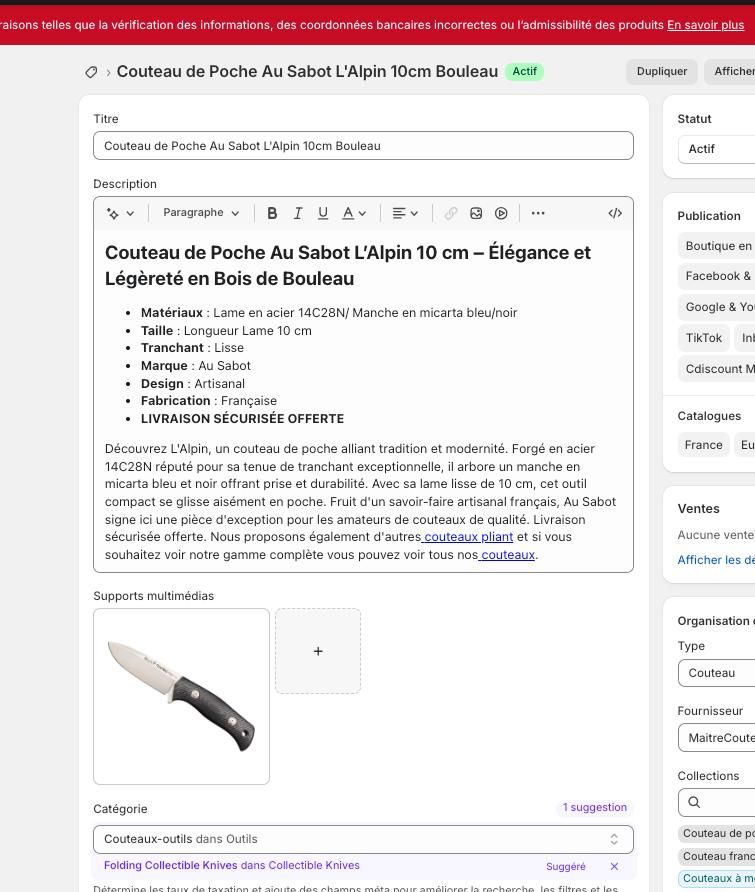 Intégration de 30 à 50 fiches produits par jour sur Shopify : collecte de données fournisseur, optimisation SEO des balises et descriptions, compression des visuels et contrôle qualité de chaque fiche. -