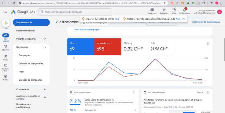 Prospection digitale et génération de leads : recherche de prospects qualifiés, envoi de campagnes email ciblées, gestion des contacts et démonstration de valeur via des audits de sites avec SimilarWeb pour convertir les prospects en clients. -