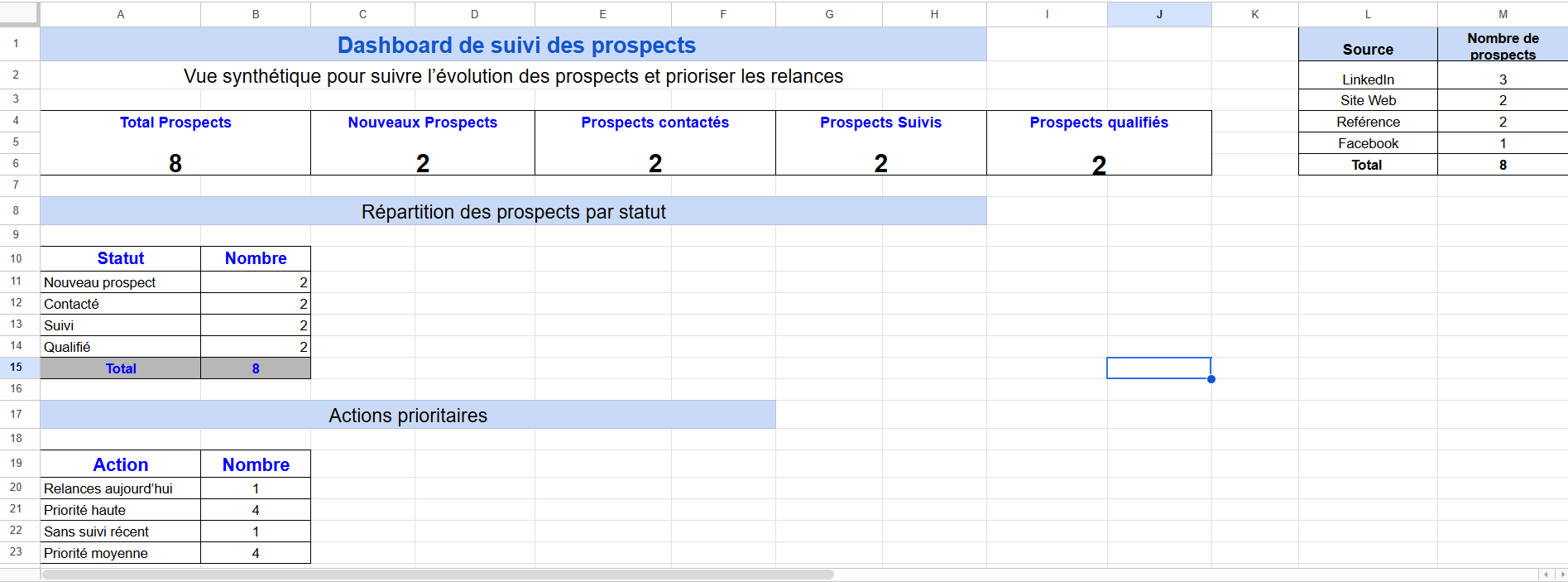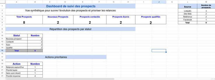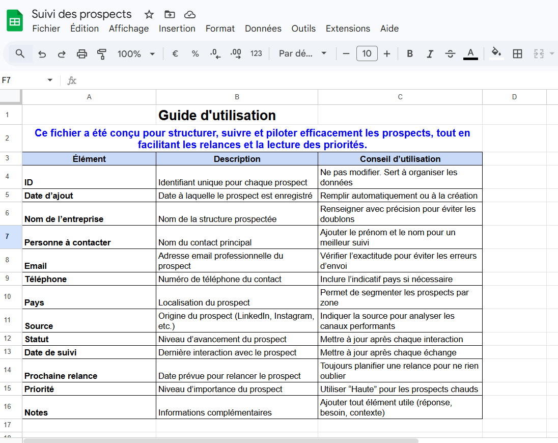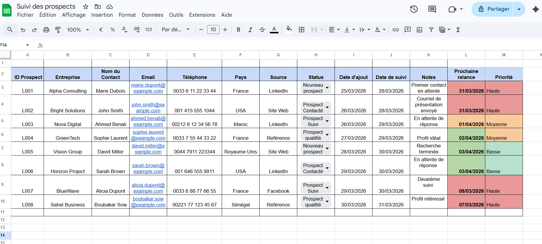 Je vais structurer et organiser les prospects et relances sur google sheets avec un suivi clair et efficace