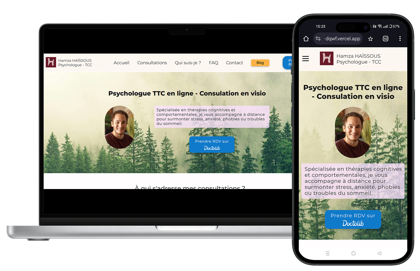 Création du site d’un psychologue pour présenter son approche, ses spécialités et faciliter la prise de rendez-vous. Un site sobre et rassurant, pensé pour mettre en confiance et permettre aux patients de trouver rapidement les informations essentiel