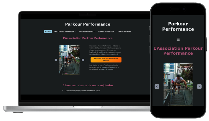 Création du site d’une association sportive afin de présenter ses activités, ses horaires et faciliter les inscriptions. Un site clair, structuré et facile à parcourir, pensé pour offrir une navigation fluide sur mobile comme sur ordinateur. -
