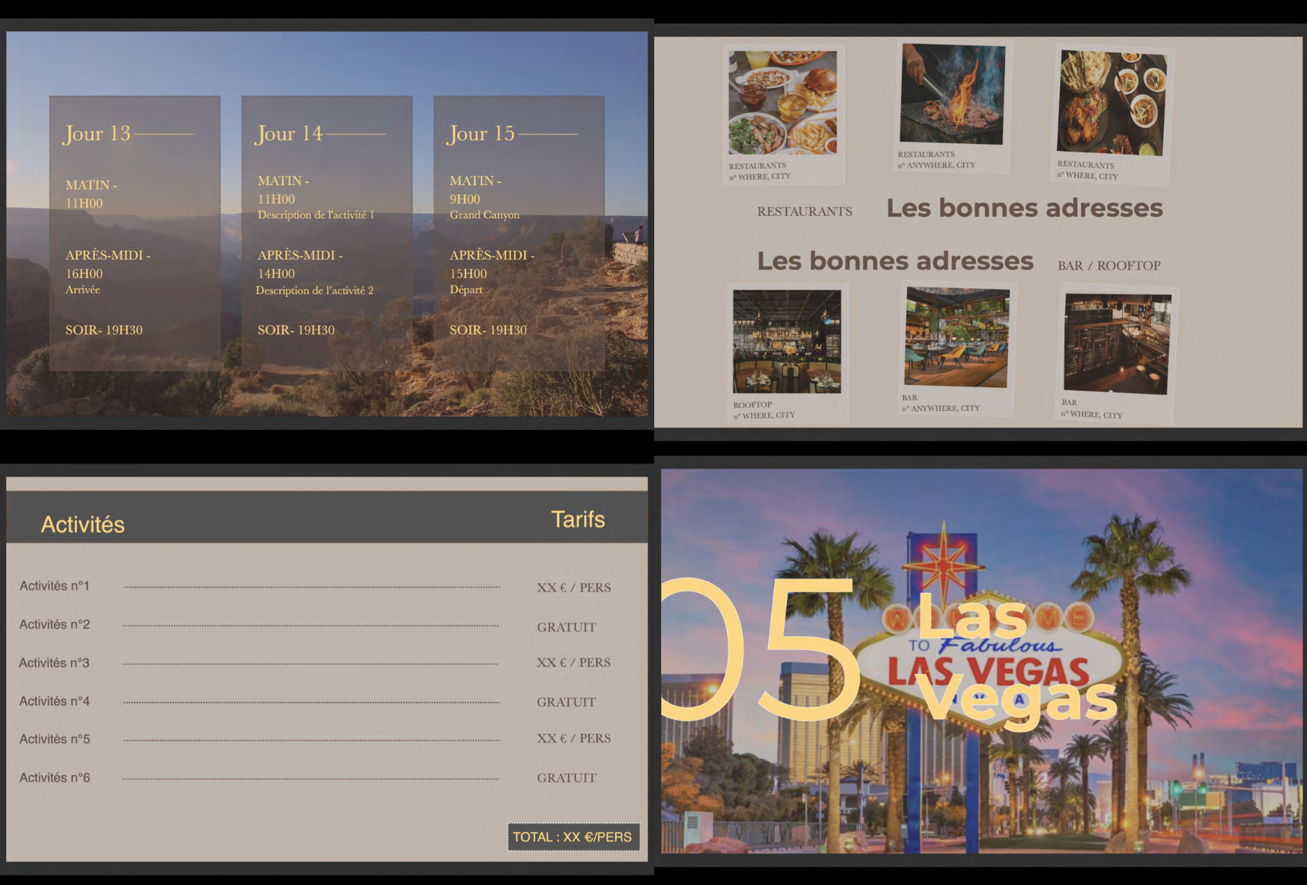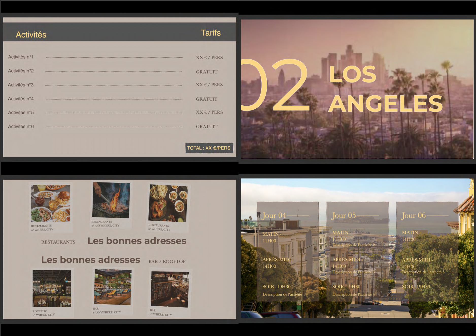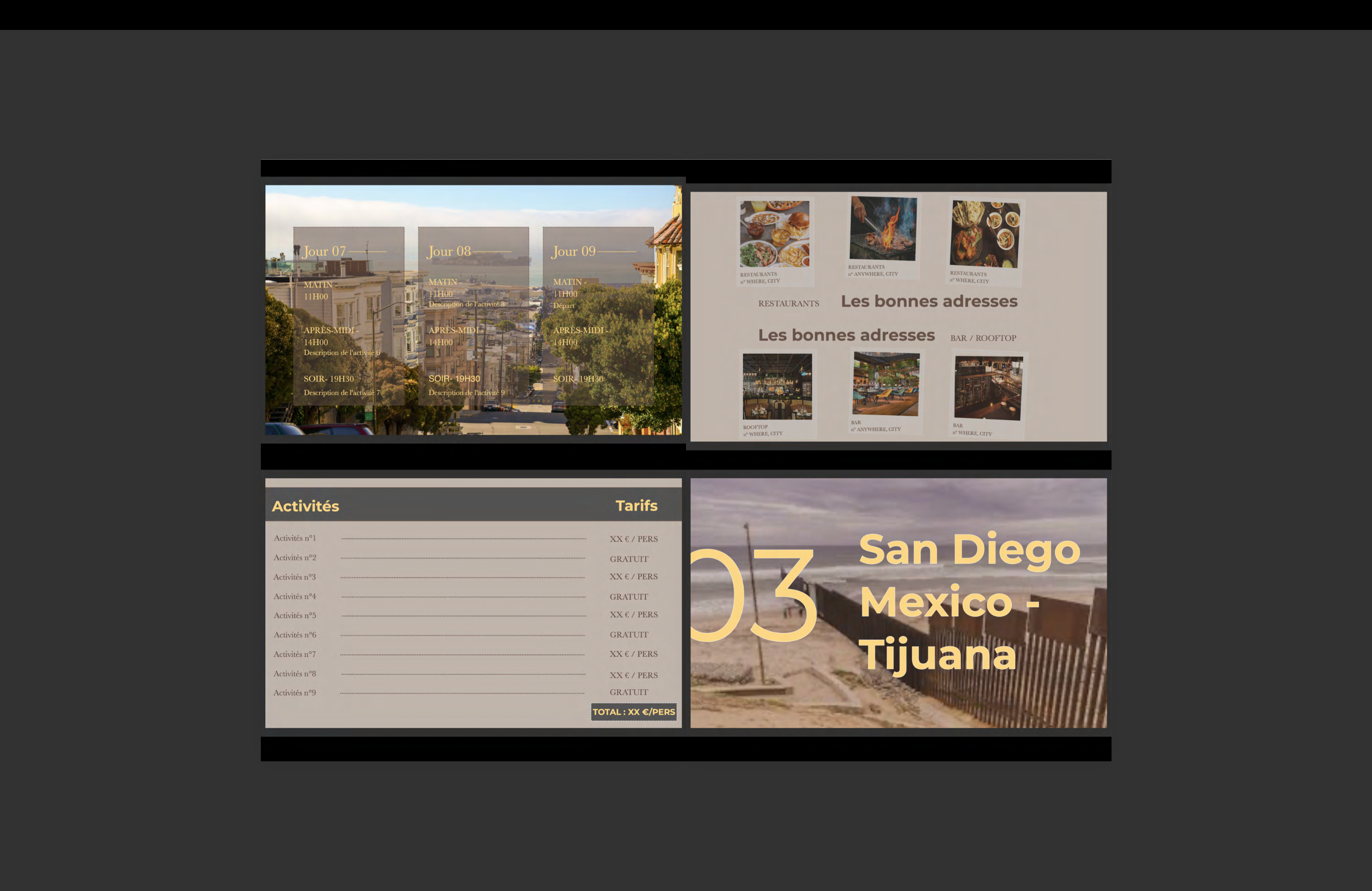 Je vais créer une liste de 5 activités incontournables et 2 conseils de quartiers où loger par destination