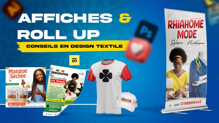 je vais concevoir votre affiche ou roll up pro et proposer des conseils en design textile