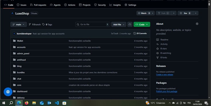 Conception du backend e‑commerce sous Django : produits, commandes, livraison, retours/remboursements et fonctionnalités temps réel (notifications/chat). Mise en place des rôles, sécurité et préparation au déploiement. -