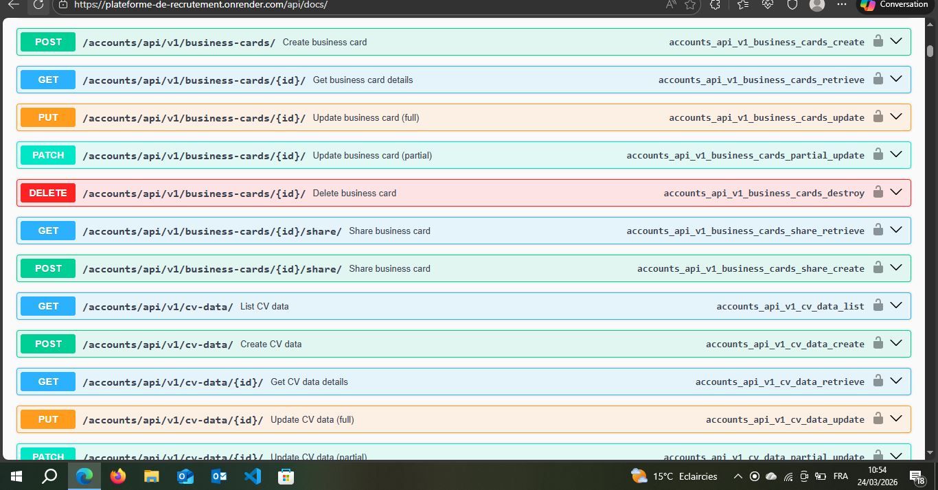 Développement du backend d’une plateforme de recrutement Django : matching candidats, gestion des paiements (Stripe/AfribaPay) et messagerie temps réel. Conception des modèles, APIs, sécurité et intégrations. -