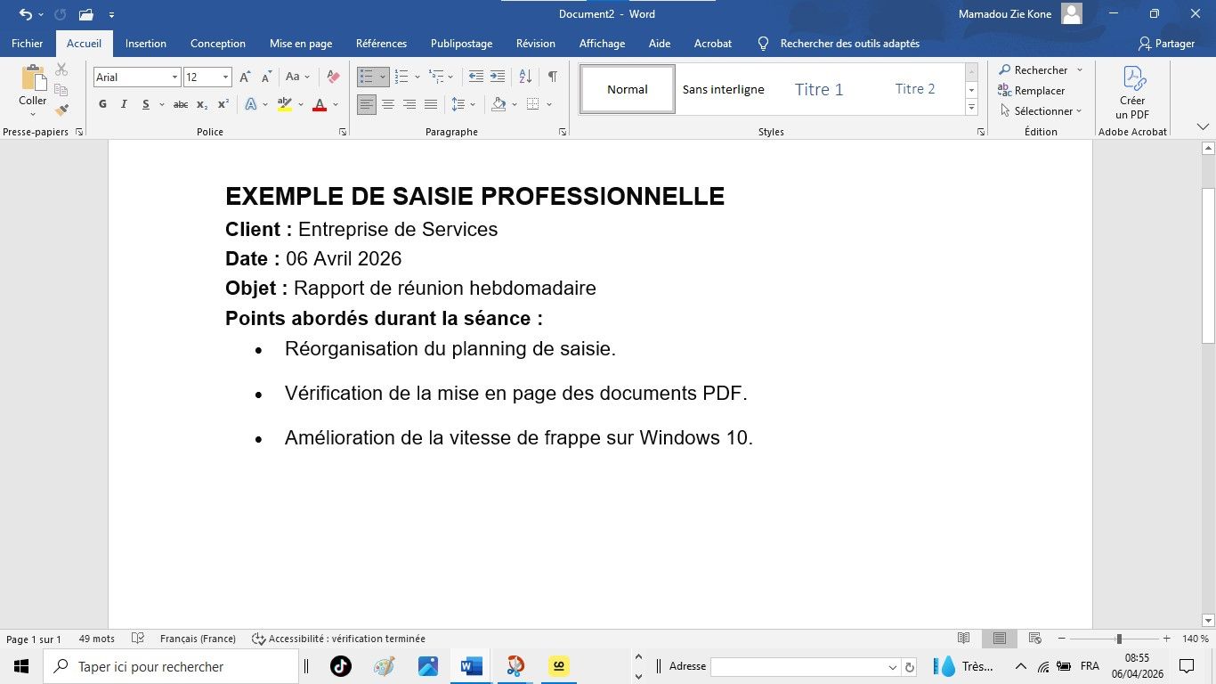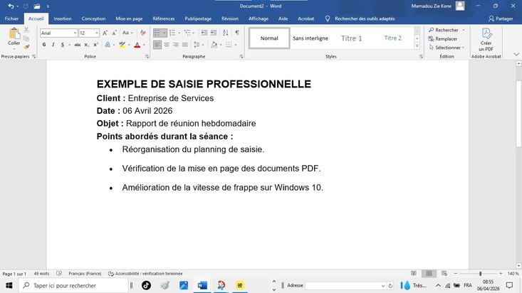 Saisie rapide et précise de documents administratifs, manuscrits et PDF vers Microsoft Word. Maîtrise avancée du clavier et des outils bureautique sous Windows 10. Je garantis une mise en page soignée et le respect total de la confidentialité des don