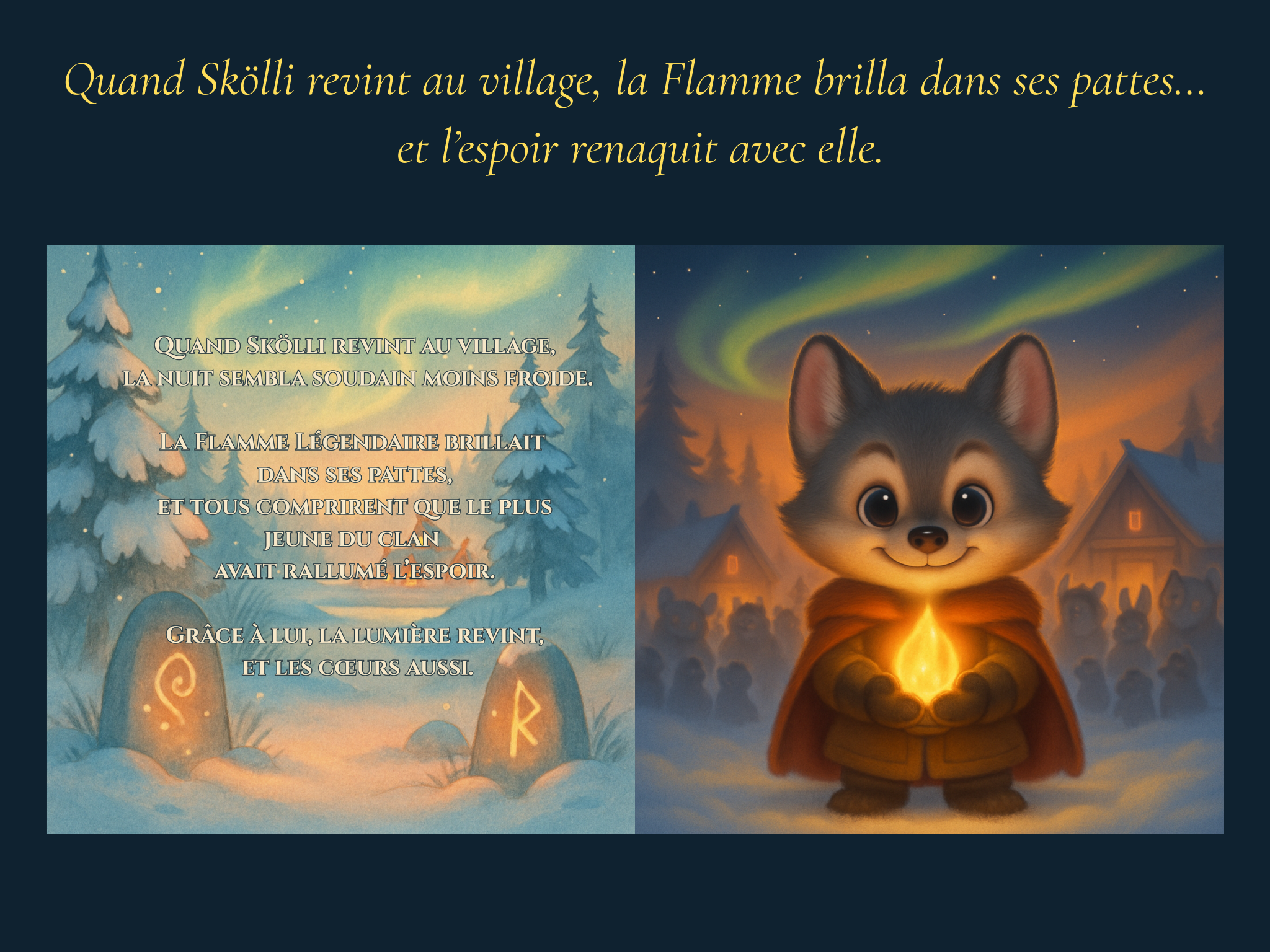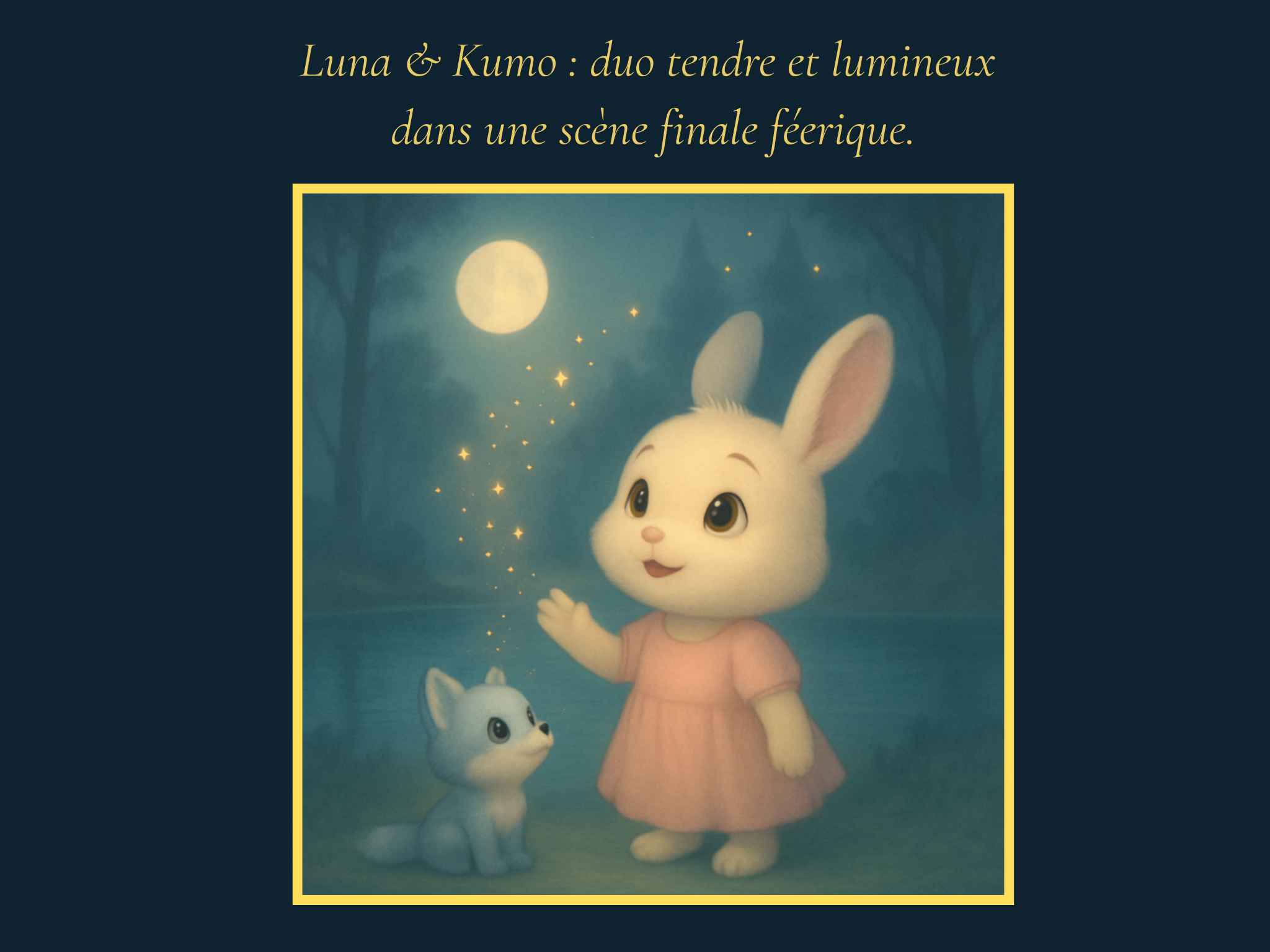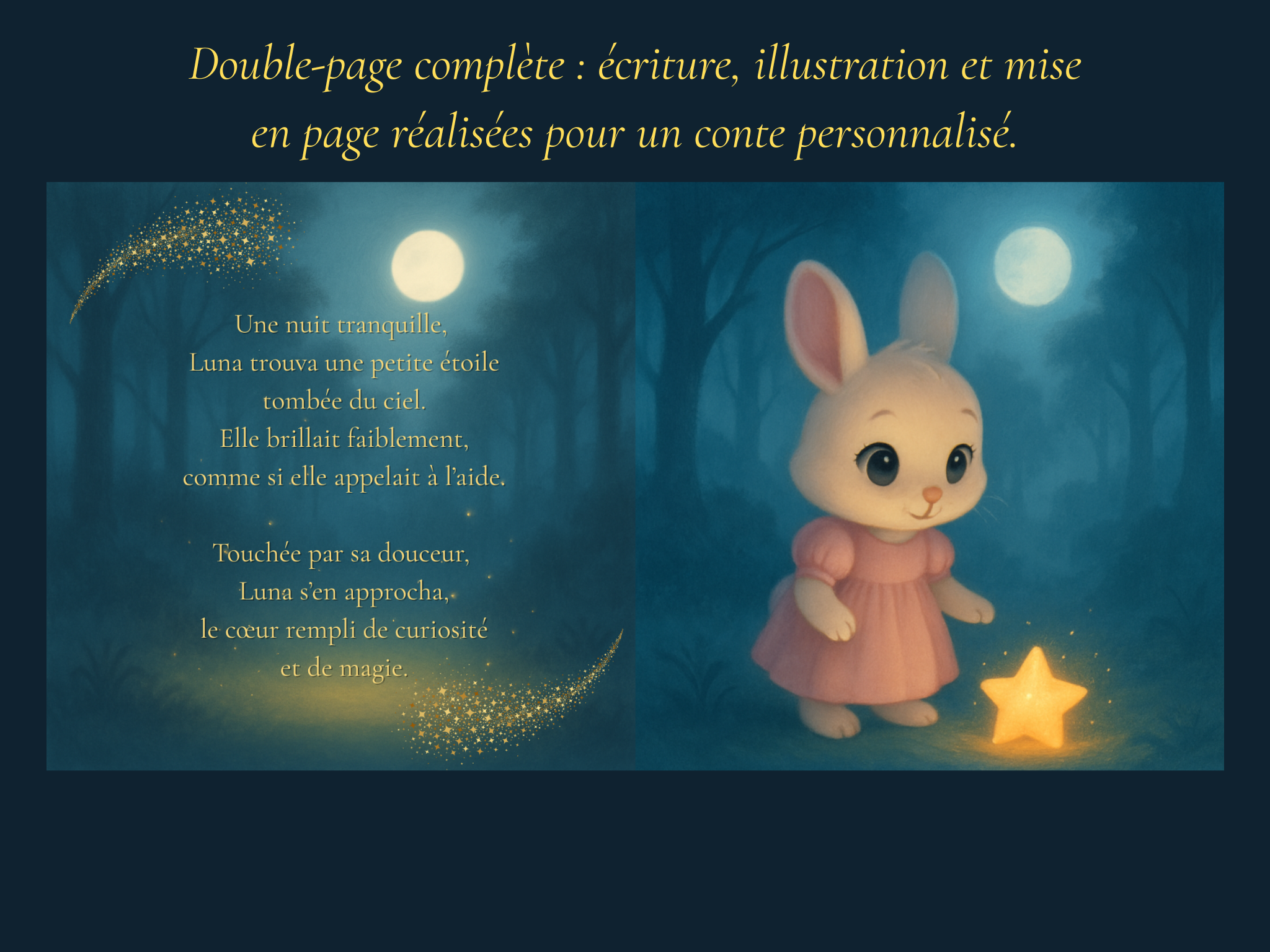 Je vais créer un mini conte illustré personnalisé doux et magique en double page
