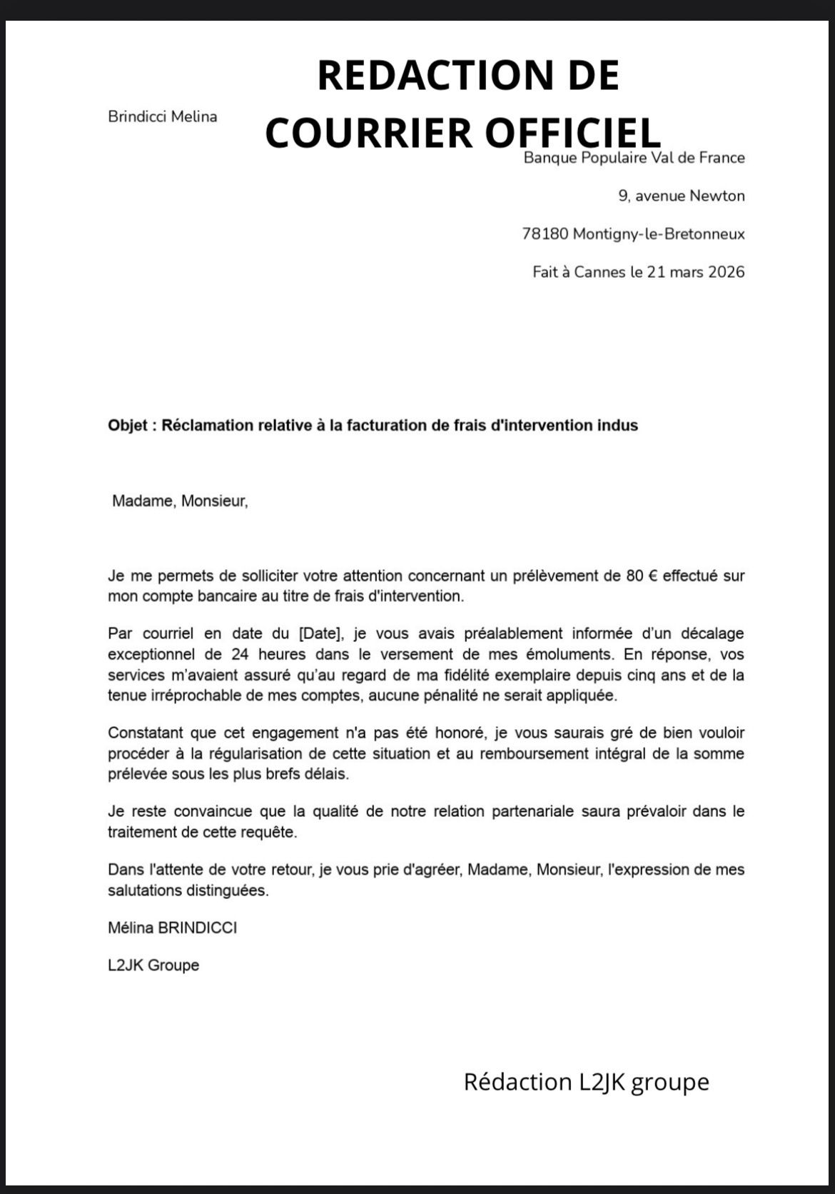 - Rédaction de lettres formelles