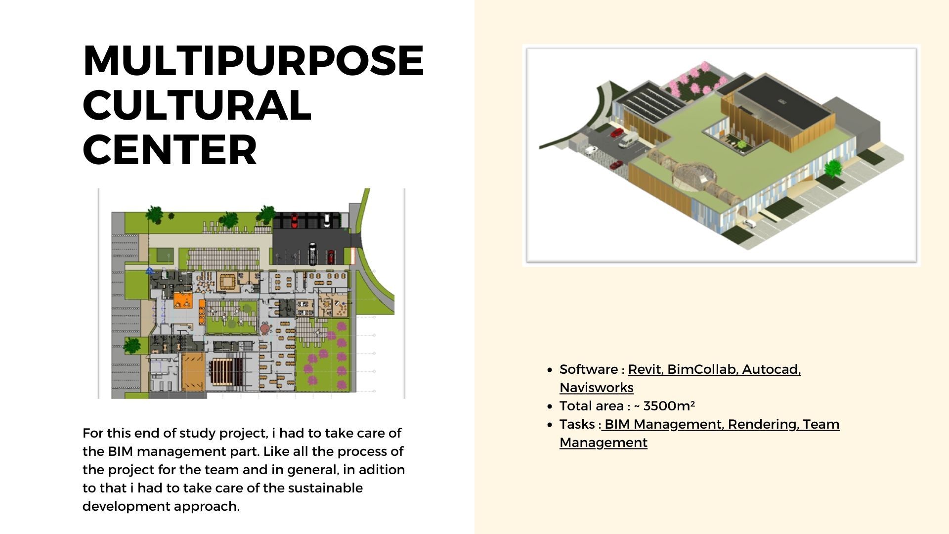 Expérience terrain : En tant que coordinateur BIM chez Parallèle 45, j'ai travaillé sur des projets complexes qui nécessitent une grande rigueur et un savoir-faire précis.