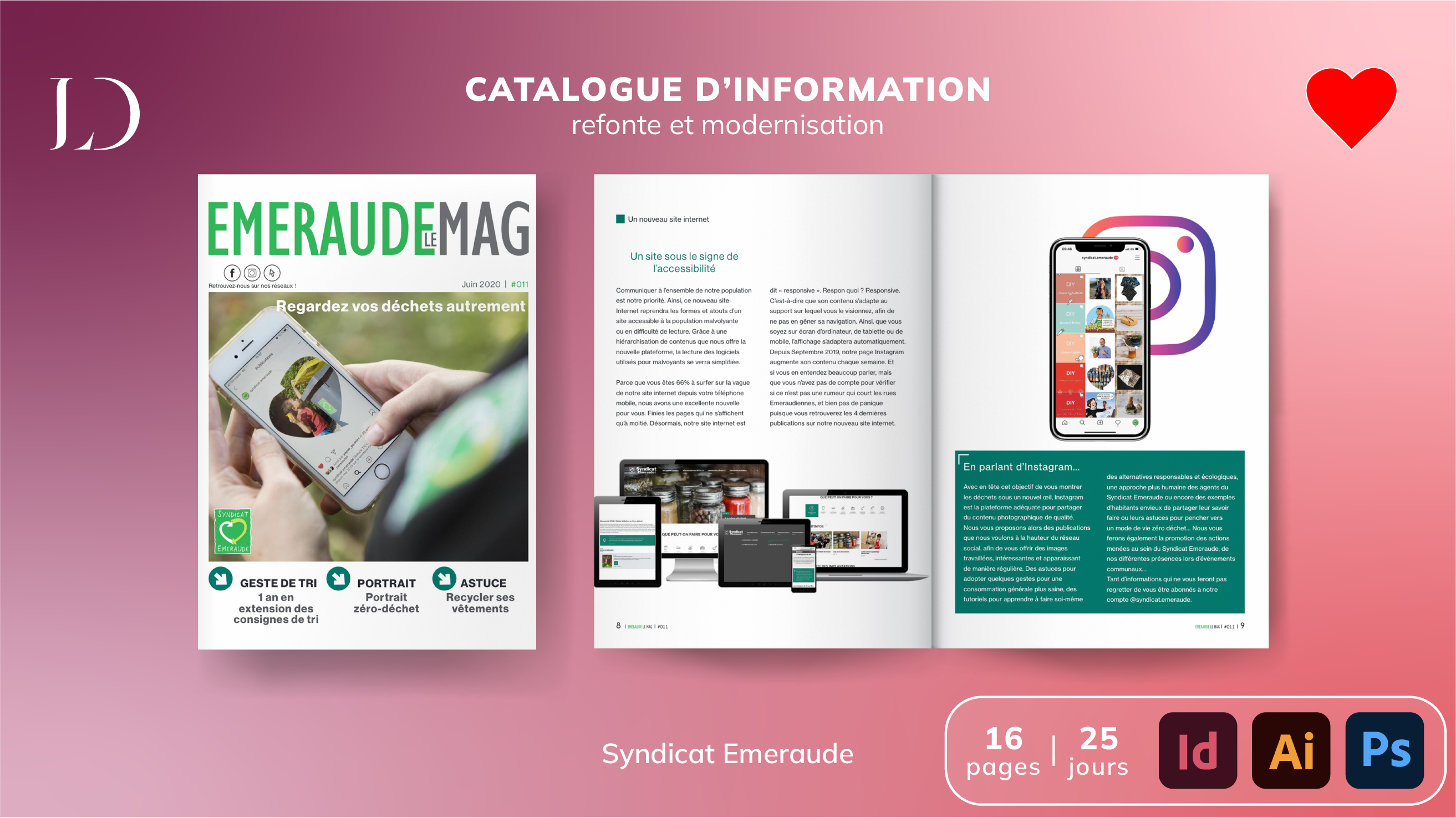 Réalisation d'outils de communication dans la prévention et la sensibilisation au tri des déchets Cible : 17 communes, 280 000 habitants Community management Facebook & Instagram -