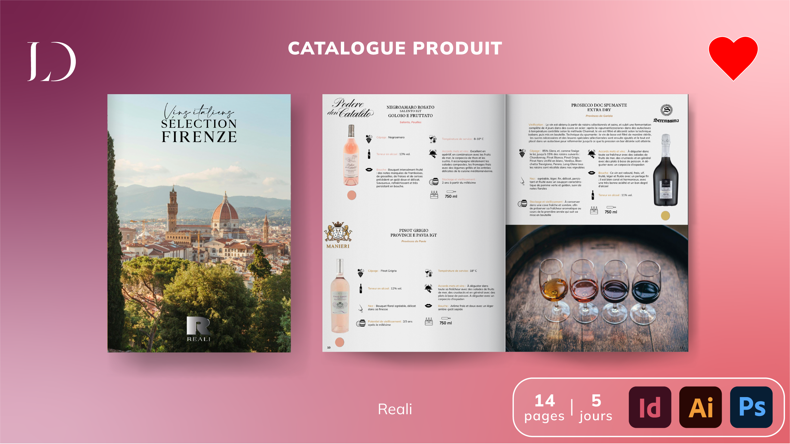 Je travaille sur la suite Adobe (Photoshop, Illustrator, InDesign…) et réalise tout type d’infographie : logo, identité visuelle, flyer, affiche, visuels réseaux sociaux, supports print & web, branding, etc.