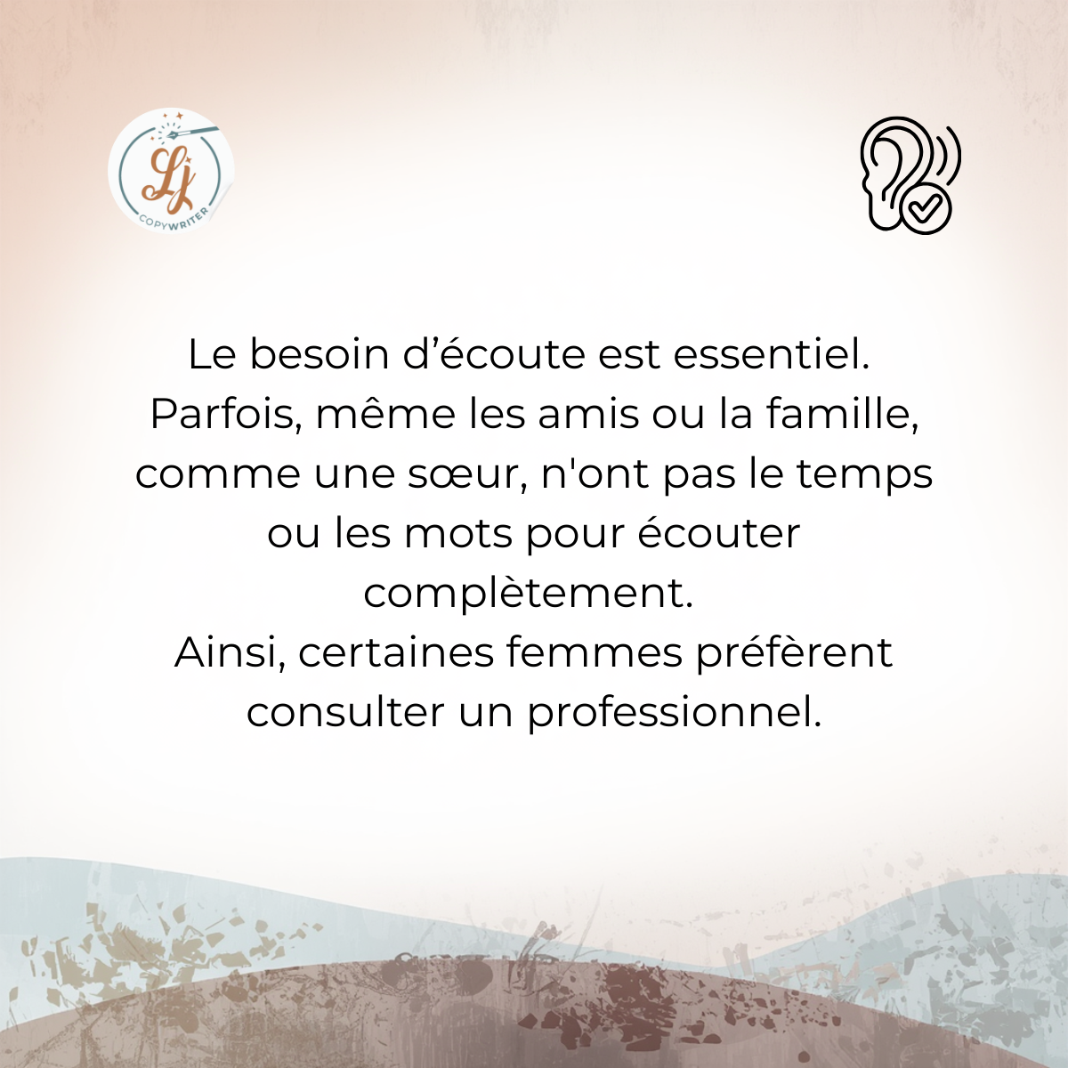Mon rôle est de transformer votre message en un texte clair, humain et inspirant, afin que vos futurs clients comprennent qui vous êtes et ce que vous pouvez leur apporter.