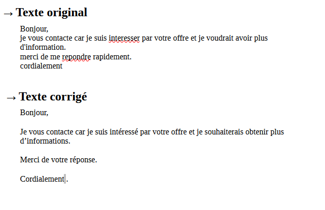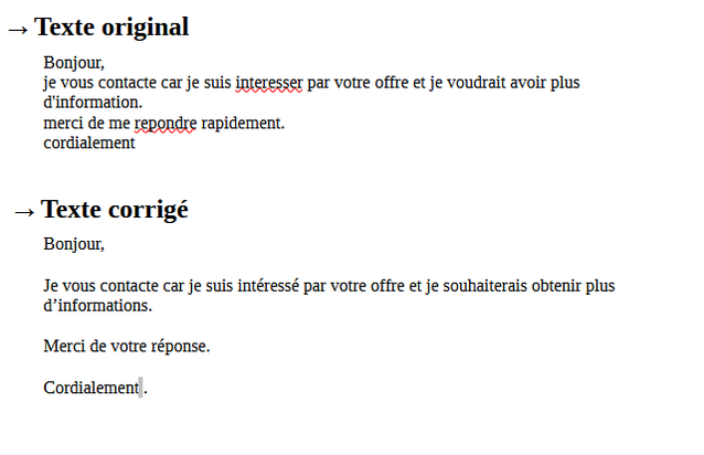 Je vais corriger l'orthographe, la grammaire et la ponctuation de votre texte