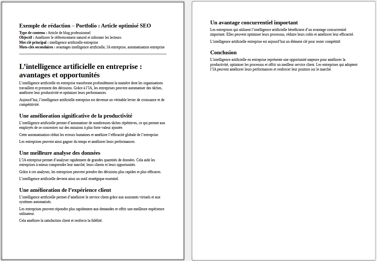Rédacteur web sérieux et rigoureux dans la rédaction d’articles SEO, fiches produits et correction de textes. J'aide aussi à créer / optimiser des documents professionnels (CV ATS, lettres, emails).