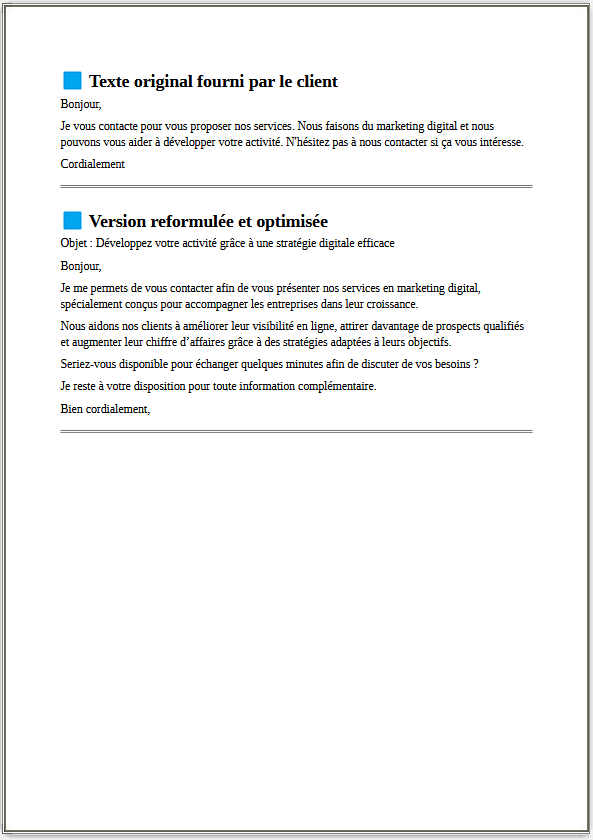 Je vais reformuler votre texte pour le rendre clair, fluide et professionnel
