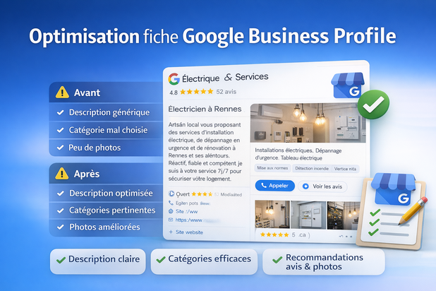 Accompagnement des TPE, artisans et indépendants dans le développement de leur visibilité en ligne. Missions principales : – audit de visibilité locale (Google, site web, réseaux sociaux) – optimisation de fiches Google Business Profile – création e