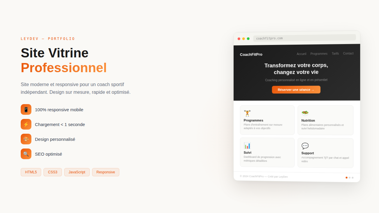 - Sites web modernes et responsive (vitrines, landing pages, portfolios)