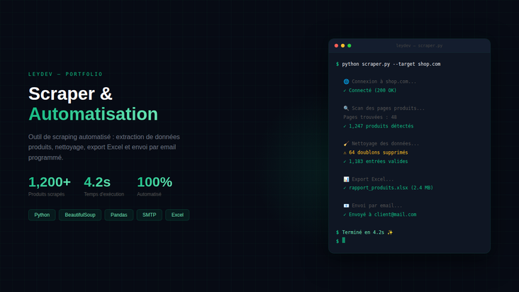 - Automatisations sur mesure (scraping, bots Telegram, scripts Python)