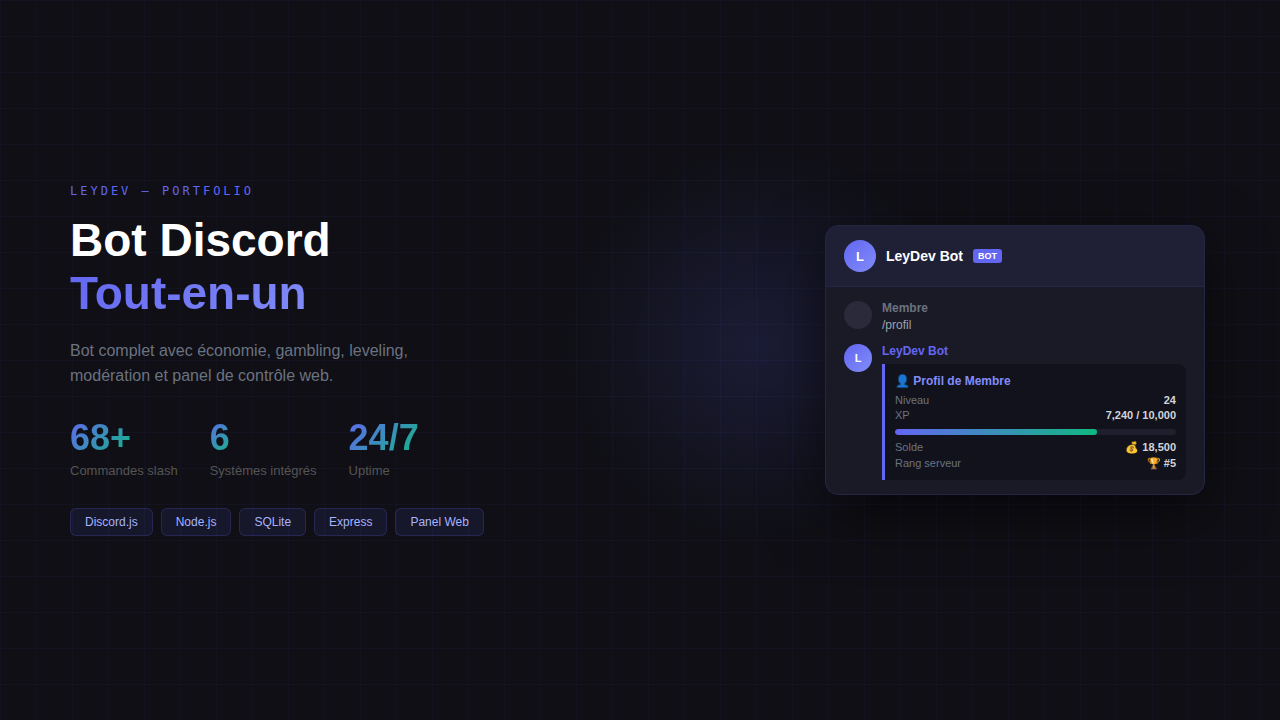 - Bots Discord personnalisés (modération, économie, mini-jeux, leveling)