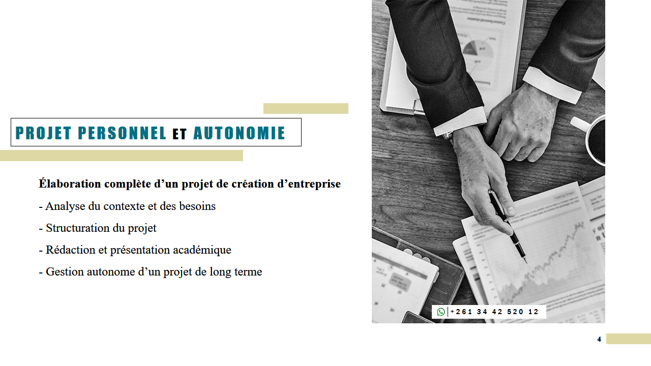 Confiez nous vos projets pour des présentations professionnelles, interactives et bien structurées, adaptées aux soutenances, projets académiques ou tout simplement pour des besoins personnels.