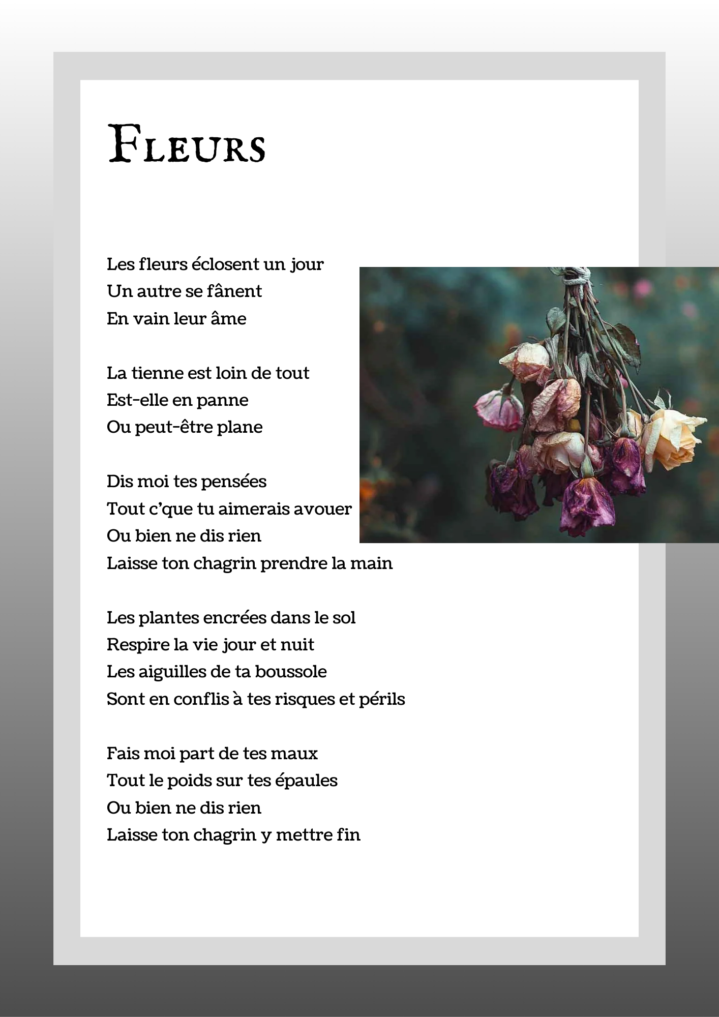 Je crée pour vous des paroles de chanson originales, écrites sur mesure selon votre univers, votre style musical et votre message. Possibilité en français et en anglais.