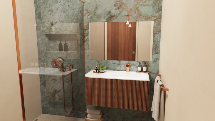 Je crée des rendus 3D réalistes, personnalisés selon vos choix de matériaux, mobilier, robinetterie, etc.