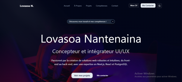 Je suis Lovasoa Nantenaina, développeur spécialisé en Flutter et Next.js. Je crée des applications mobiles et web rapides, scalables et faciles à maintenir pour startups, entrepreneurs et petites entreprises.