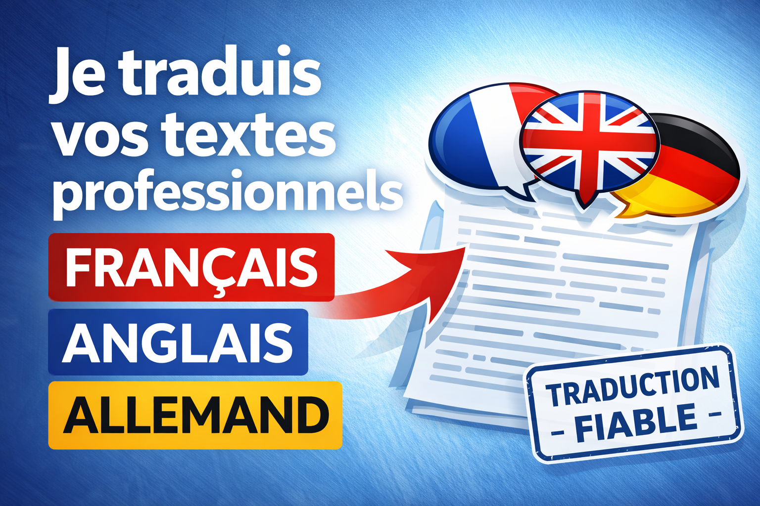Je traduis vos textes professionnels en français, anglais et allemand avec sérieux et précision.