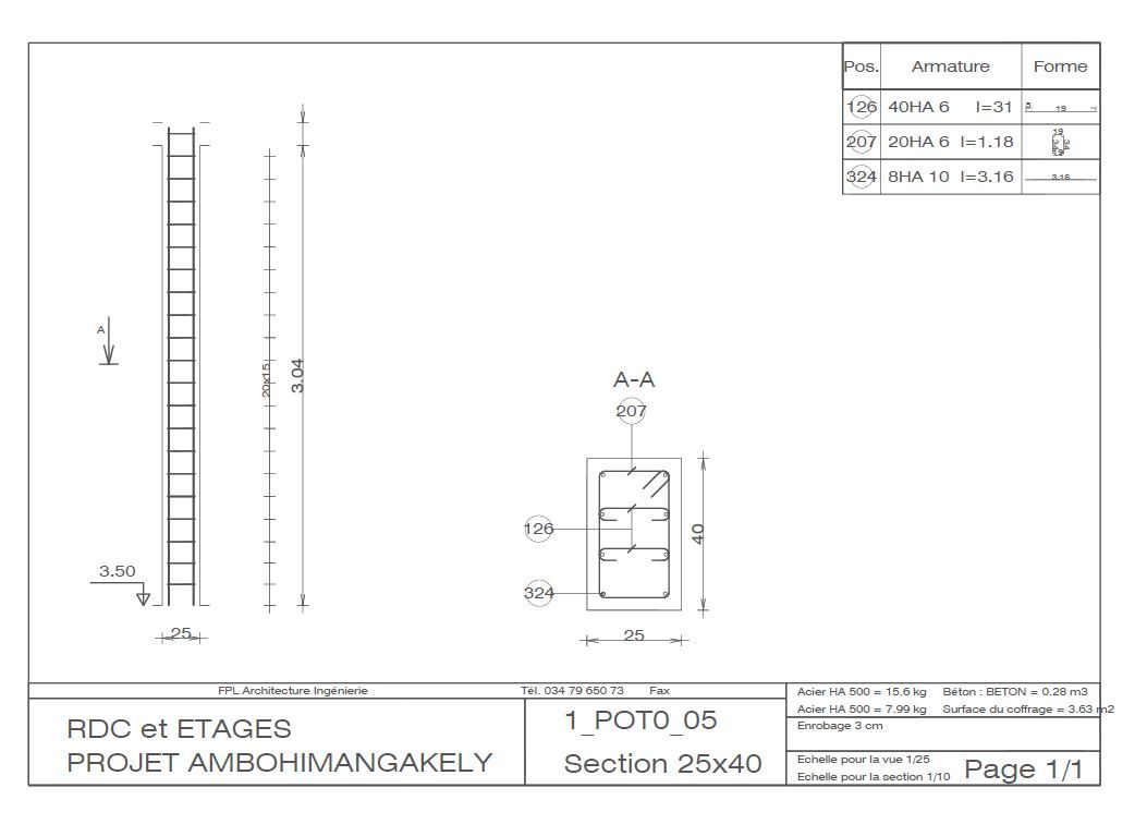 Je vais faire l'étude de structure et schémas de ferraillage pour votre projet